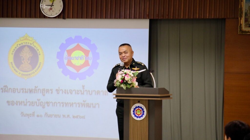 กองบัญชาการกองทัพไทย โดย หน่วยบัญชาการทหารพัฒนา (นทพ.) จับมือ กรมทรัพยากรน้ำบาดาล เปิดตัวหลักสูตร “ช่างเจาะน้ำบาดาล รุ่นที่ 1” เสริมแกร่งความรู้และทักษะเชิงเทคนิคให้แก่กำลังพลที่ปฏิบัติภารกิจขุดเจาะน้ำบาดาลทั่วประเทศ โดยมี พล.ท.ศราวุธ จันทร์พุ่ม รองผู้บัญชาการหน่วยบัญชาการทหารพัฒนา (รองผบ.นทพ.) เป็นประธานเปิดหลักสูตรอย่างเป็นทางการ