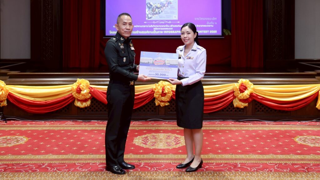 สลก.สป.จัดพิธีมอบรางวัล Infographic Design ยกย่องความคิดสร้างสรรค์ สืบสานความจงรักภักดีต่อสถาบันพระมหากษัตริย์ โดยเปิดพื้นที่ให้เยาวชนและประชาชน ถ่ายทอดพระราชกรณียกิจในมุมมองใหม่ๆ ที่เข้าถึงง่ายและร่วมสมัย