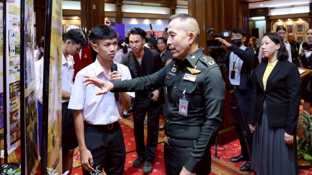 กลุ่มที่ 1 “คุณูปการของสถาบันพระมหากษัตริย์ต่อประเทศไทย” : นายภาคม ชินโชติเกษม นักเรียนชั้น ม.5 โรงเรียนพุทธชินราชพิทยา จังหวัดพิษณุโลก