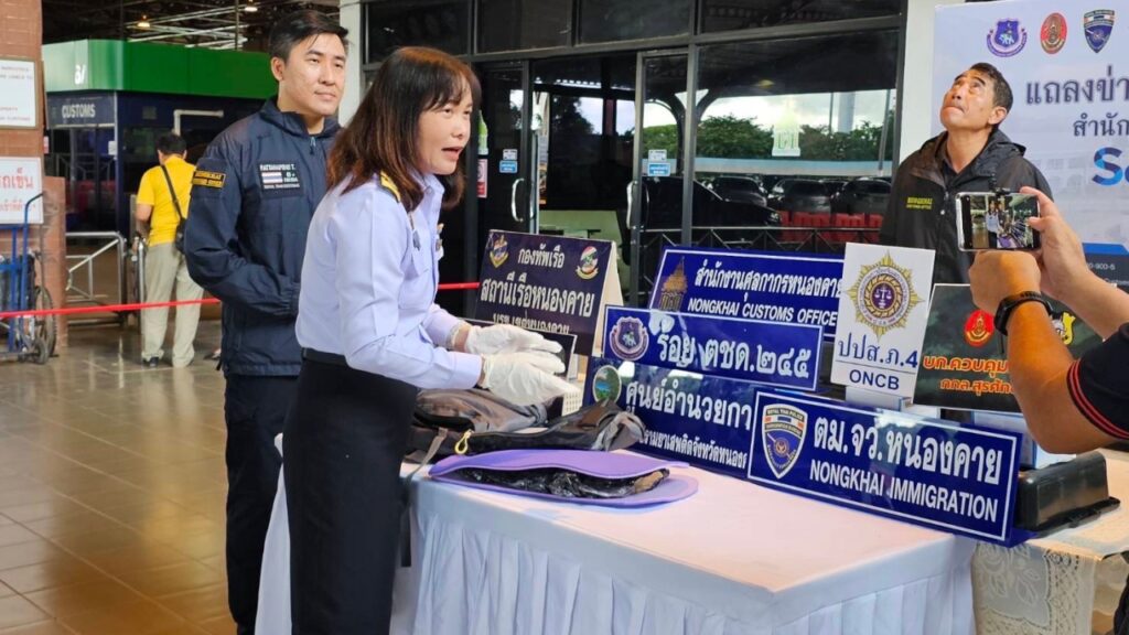 “ด่านหนองคาย” โชว์ผลงาน! สกัดจับผู้ต้องหาลอบขนยาเสพติดซุกในกระเป๋าเดินทาง เผยใช้เทคนิคแนบเนียนซ่อนเฮโรอีนในผนังกระเป๋า หวังผ่านด่านตรวจโดยไม่ถูกจับตา แต่กลับถูกรวบคาด่าน พร้อมของกลางน้ำหนักกว่า 1.5 กิโลกรัม มูลค่า 450,000 บาท