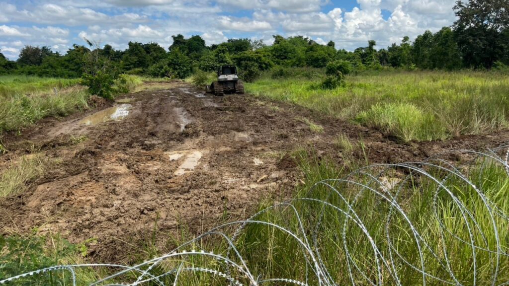 ขณะที่บริเวณ บ้านหนองหญ้าแก้ว ยังไม่พบการเคลื่อนไหวที่ชัดเจนจากฝ่ายไทย แต่ฝั่งตรงข้าม กลับมีความเคลื่อนไหวของชาวกัมพูชาประมาณ 100 คน กระจายตัวใกล้แนวรั้วลวดหนามและหมู่บ้านเปรยจัน ทำให้หน่วยงานฝ่ายไทยต้องนำกองร้อยควบคุมฝูงชนและชุดตรวจค้นวัตถุระเบิดจำนวน 4 ชุด พร้อมรถถากถางหุ้มเกราะ D5 เข้าปฏิบัติการในพื้นที่ คาดสามารถเคลียร์พื้นที่ปลอดภัยได้กว่า 38,000 ตารางเมตร