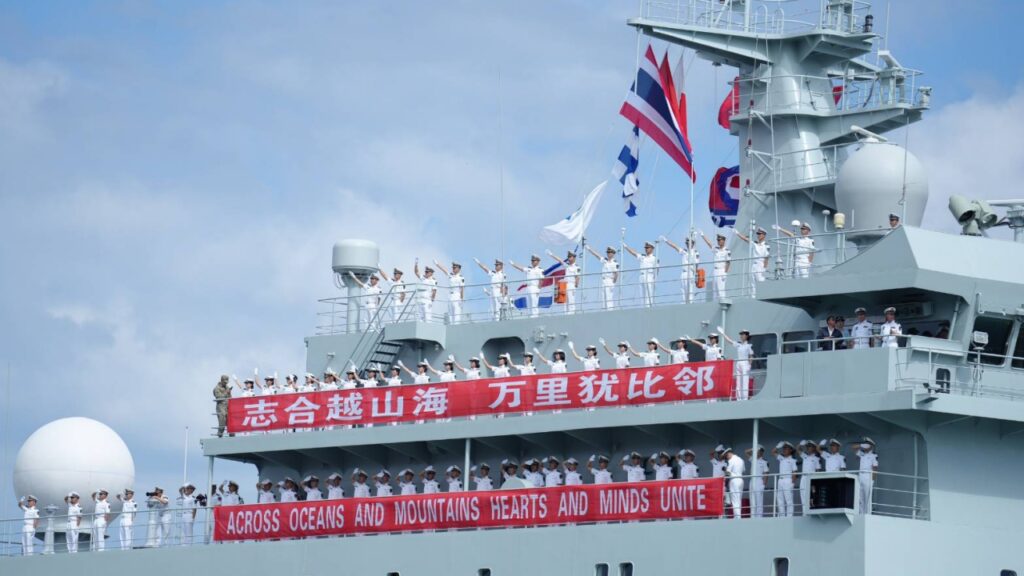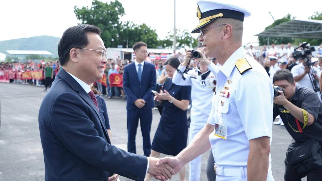 หมู่เรือฝึกนักเรียนนายเรือจีน 2 ลำ พร้อมกำลังพลกว่า 1,200 นาย เข้าเยือนไทย ณ ฐานทัพเรือสัตหีบ เสริมสร้างความร่วมมือทางทหาร แลกเปลี่ยนการฝึก–การศึกษา ครบรอบ 50 ปีความสัมพันธ์แน่นแฟ้น ไทย–จีน เดินหน้าเสริมยุทธศาสตร์คุมสมุทร