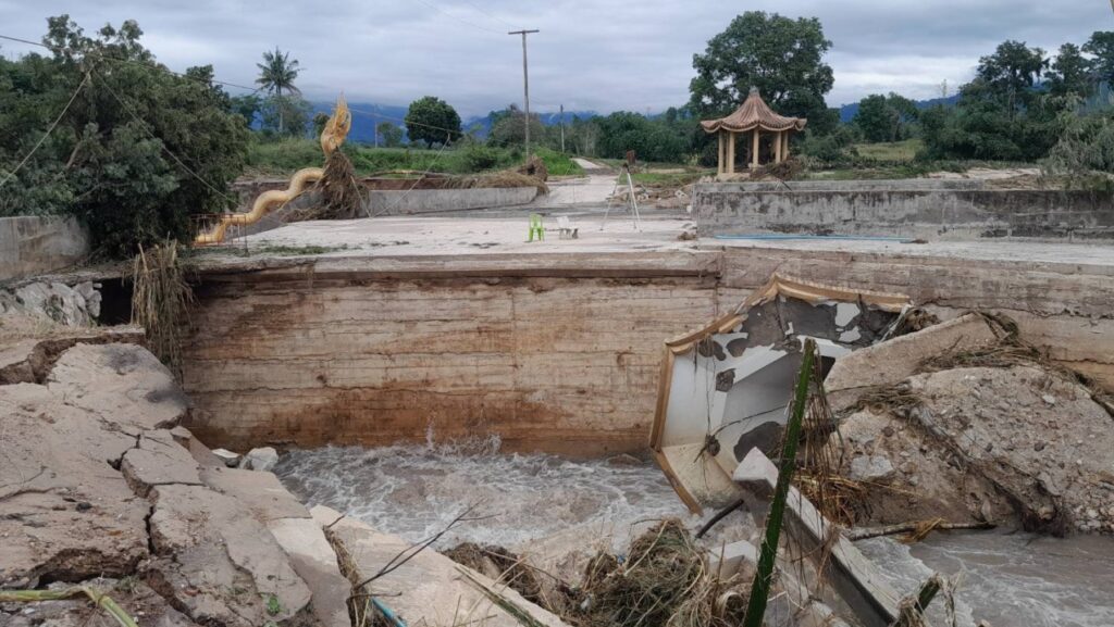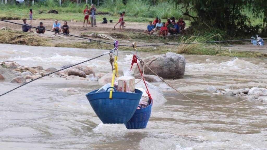 โดยเฉพาะในพื้นที่ บ้านอีซ่า และบ้านกลุ่มไซเบอร์ ตำบลทองหลาง ที่ประสบภัยหนัก หลังกระแสน้ำเชี่ยวซัดคอสะพานขาด ทำให้หมู่บ้านถูกตัดขาดจากโลกภายนอก ชาวบ้านกว่า 62 ครัวเรือน ต้องใช้วิธีส่งอาหารและของจำเป็นผ่านลวดสลิงเพื่อยังชีพในเบื้องต้น สร้างความลำบากอย่างมาก