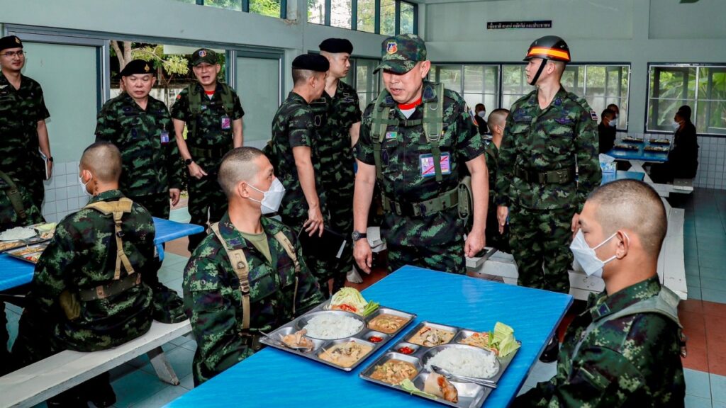 นอกจากนี้ แม่ทัพภาคที่ 1 ได้ตรวจเยี่ยมโรงประกอบเลี้ยงการดูแลด้านโภชนาการให้กับทหารใหม่ พร้อมได้สนับสนุนอาหารเพิ่มเติมและร่วมรับประทานอาหาร พบปะพูดคุยให้กำลังใจในห้วงของการฝึกของทหารใหม่ เกี่ยวกับการปรับตัวจากบุคคลพลเรือนสู่การเป็นทหารกองประจำการโดยสมบูรณ์ เพื่อพร้อมปฏิบัตงานตามหน้าที่ของหน่วยทหารต่อไป