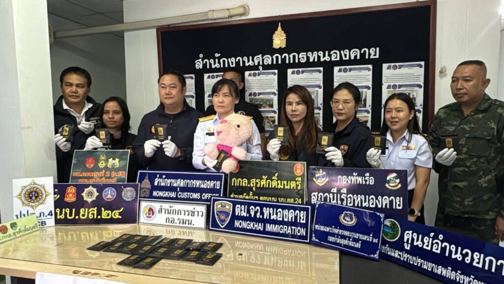 เจ้าหน้าที่ศุลกากรด่านพรมแดนหนองคาย สนธิกำลังร่วมหลายหน่วยงาน เปิดปฏิบัติการเด็ดหัวขบวนการค้ายา หลังพบหญิงสัญชาติลาวลักลอบนำ “ยาเสพติดให้โทษประเภท 1 Happy Water” ซุกซ่อนในตุ๊กตาเด็กเล่น หวังเนียนผ่านสะพานมิตรภาพไทย–ลาว แห่งที่ 1 แต่สุดท้ายไปไม่รอด ถูกจับพร้อมของกลางหนักอึ้งกว่า 1.5 กิโลกรัม
